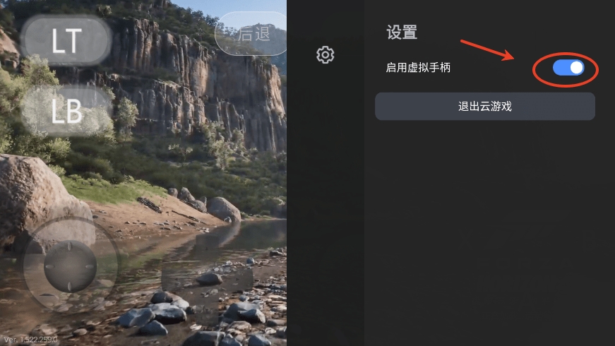9、点击返回键,出现设置界面,点击“启用虚拟手柄”;