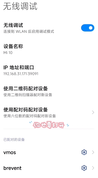 2、打开后开启无线调试