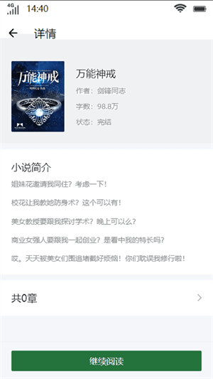 可将喜爱的小说章节缓存至设备本地,即使在无网络的环境下也能随时享受阅读乐趣。